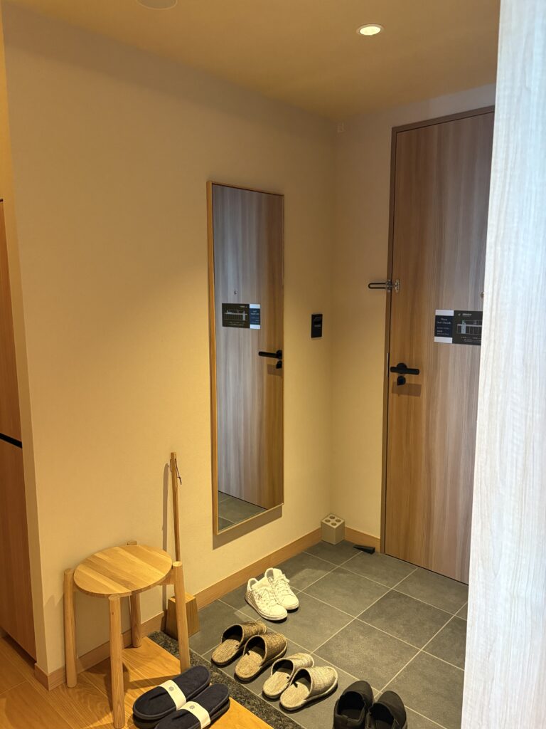 客室に到着しました。館内で使用できるサンダルは土踏まずがしっかり硬かったです。