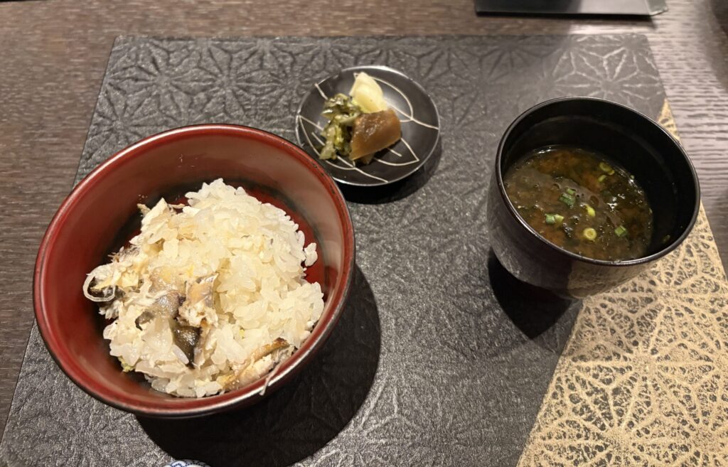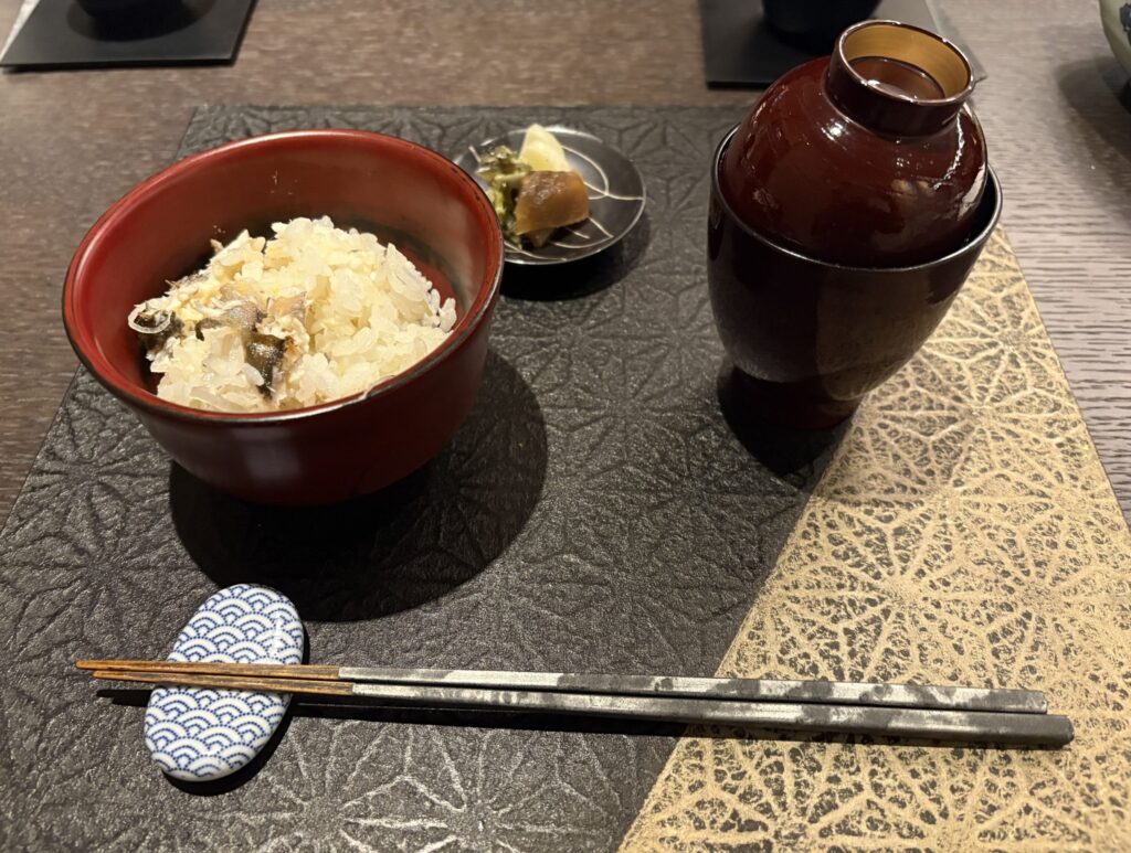 ごはんとみそ汁が運ばれてきました。動画で撮影しました。