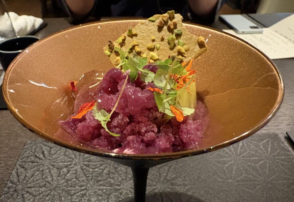 デザートは巨峰づくしでした。上にはピスタチオのクッキー?が乗っていました。よく食べました。サーブしていただいた従業員の方は最近箱根から異動されたとのことでしたので、昨年度に箱根でもお会いしていたかもしれませんね、などと楽しく会話しながら時間が過ぎました。