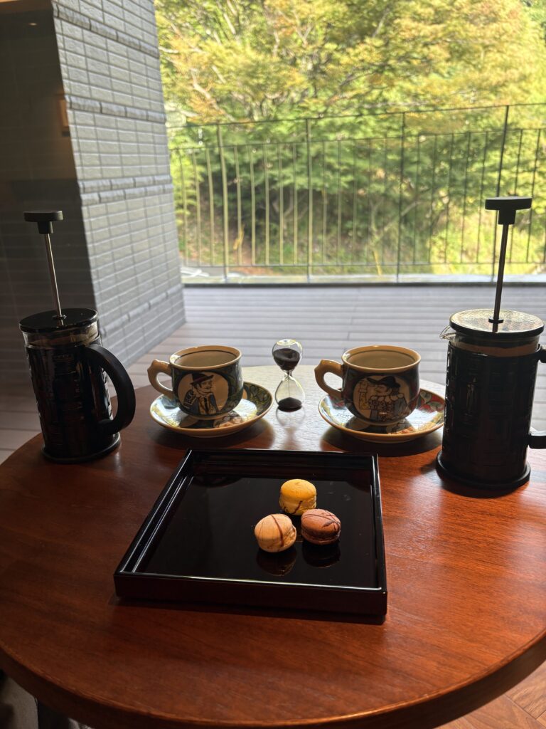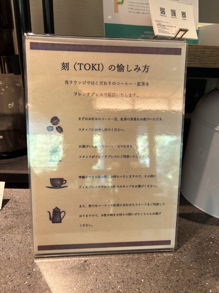 朝食の前にもう1つのゲストラウンジ「刻(TOKI)」でコーヒーをいただくことにしました。