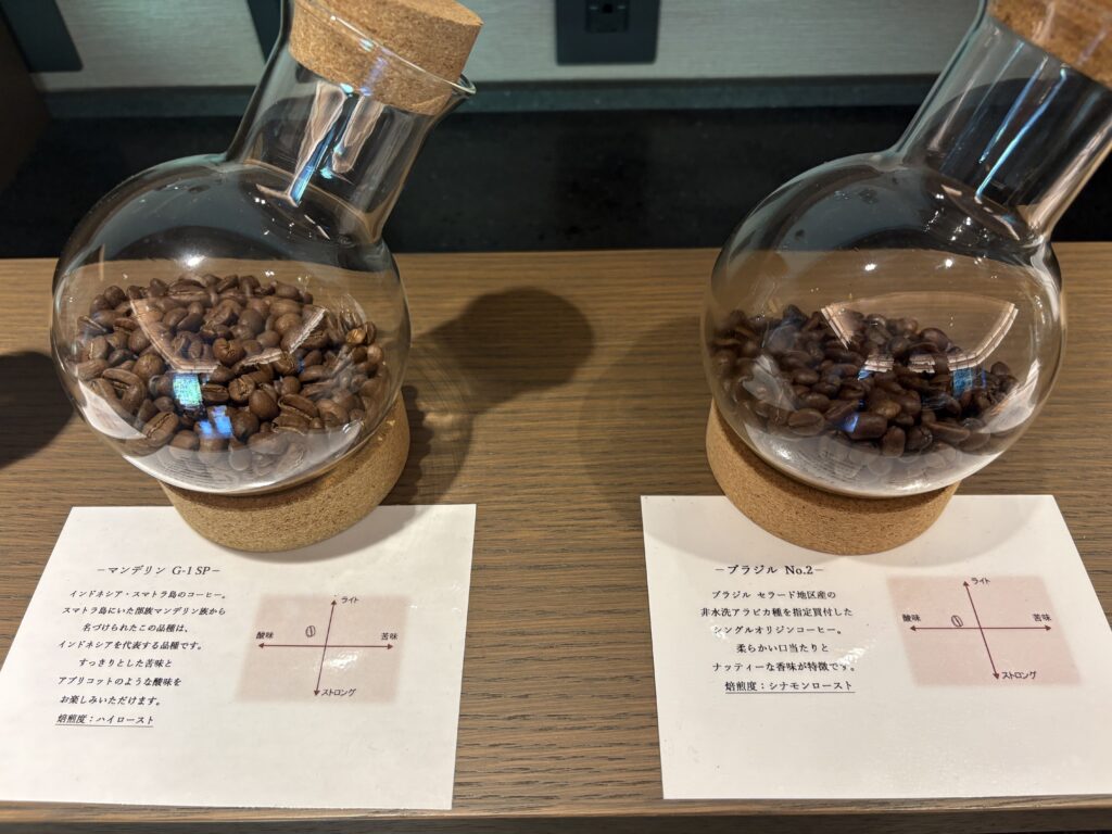 ここではなんとスタッフの方が豆からコーヒーを淹れてくださいます。夫はマンデリンを、私はブラジルを選びました。