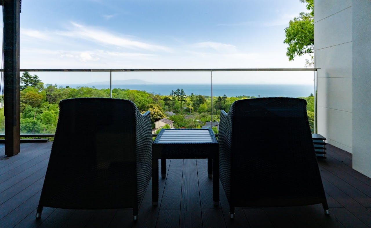 オーシャンビューのバルコニーです。うっすらですが遠くに大島も見えます。